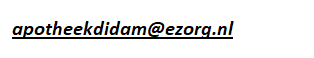 Recepten kunnen (beveiligd) worden doorgestuurd naar ons (beveiligde) EZorg mailadres. Onze voorkeur gaat uit naar dat het recept via het voorschrijfsysteem (digitaal) naar de apotheek wordt doorgestuurd. Stuurt u vaker recepten naar ons, vraag dan aan de ICT om Apotheek Didam aan uw voorschrijfsysteem te koppelen. Neem voor de gegevens die hiervoor nodig zijn eventueel per mail contact op.